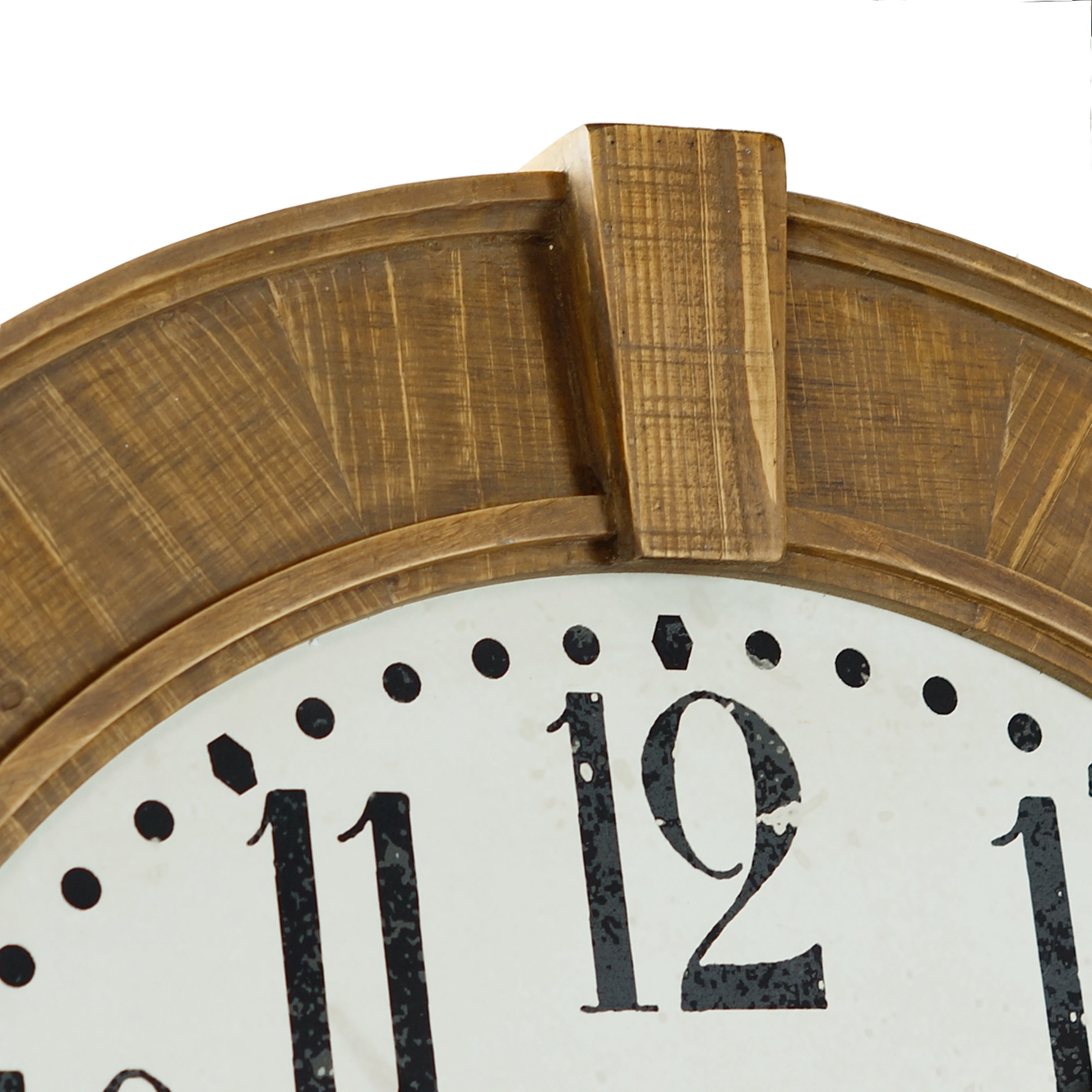 This extra large wood-framed wall clock is built by hand and features a hand-painted natural wood finish and painted face. At almost 4 feet round in diameter, this clock is perfect for a two-story great room.
