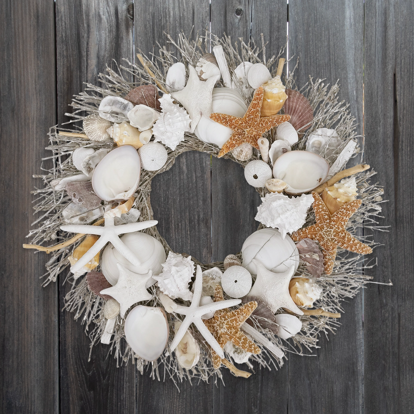 Coastal farmhouse seashell wreath
