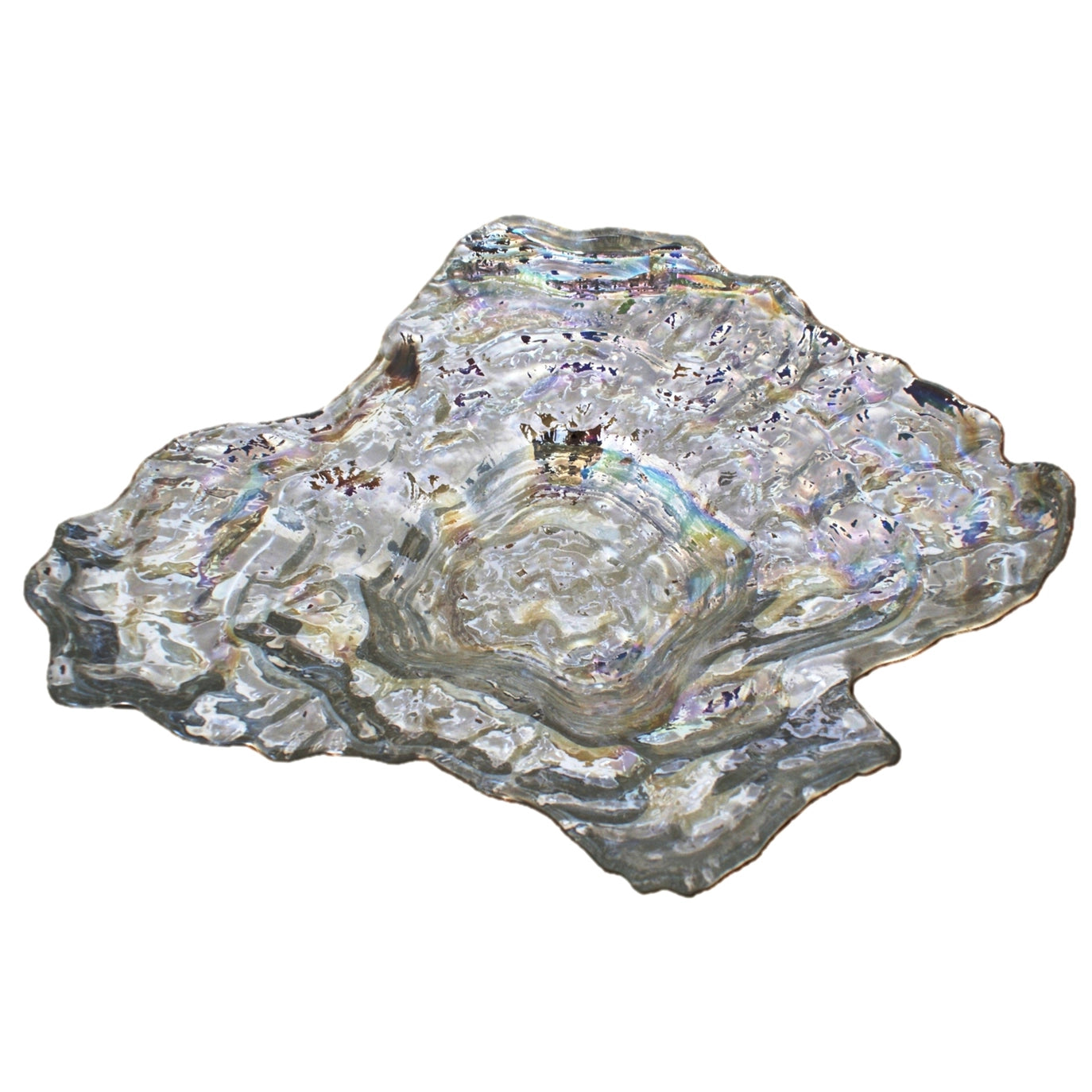 Feel the deepness of the ocean as you look into the glow of each oyster bowl created by a hand-carved texture that is combined with iridescent silver accents. This piece would be great for an entryway table or coffee table vignette.