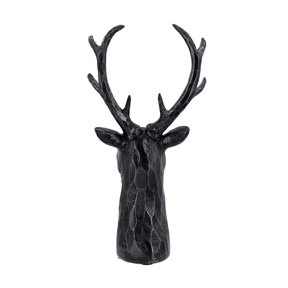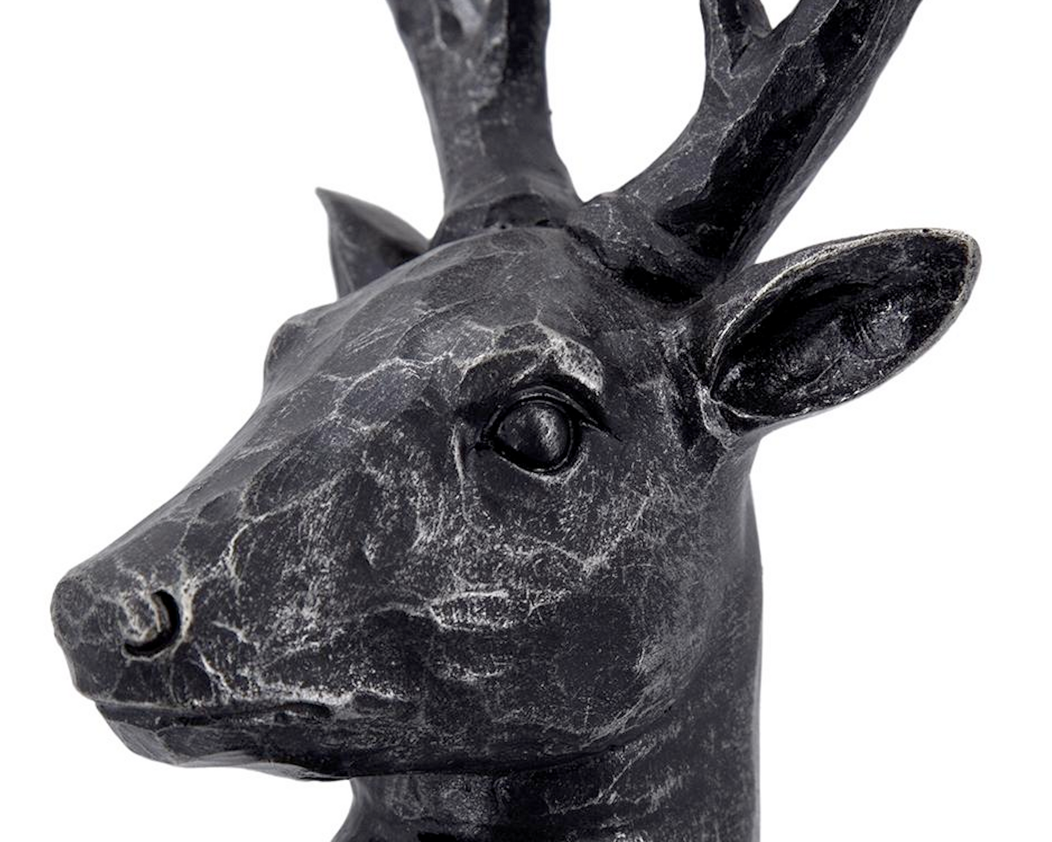 A contemporary alternative to traditional mount designs, this Darby eight-point deer head offers a lodge-inspired aesthetic for the modern home. This piece is crafted from durable resin with a rough-hewn form that mimics a wood carving. The distressed black finish ensures an easy fit with a variety of interior decor styles.