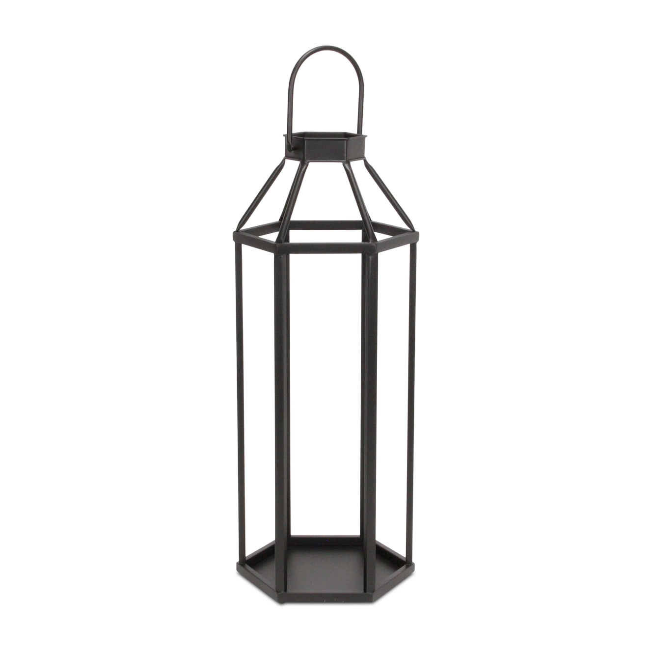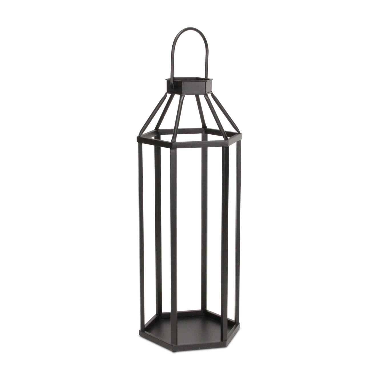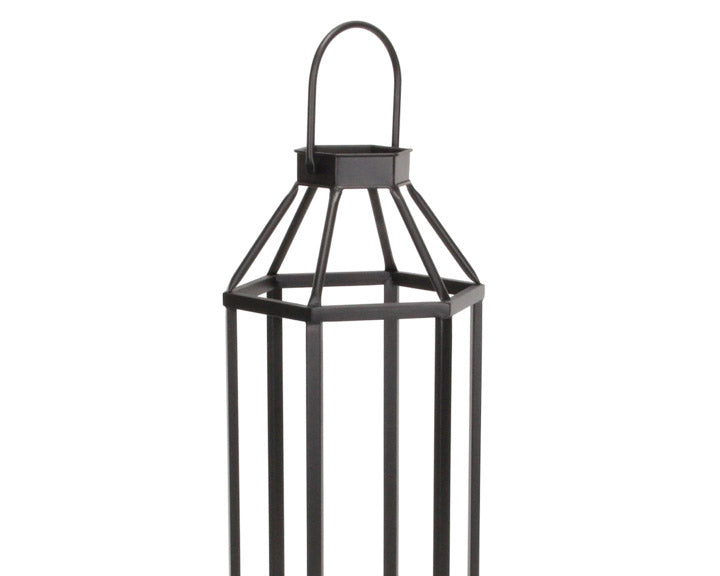 Black geometric open-air tall metal lantern
