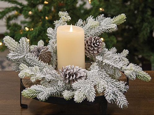Flocked artificial woodland pine candle ring